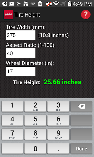 • Tire Size Calculator: Convert the funky P-Metric tire size (Example: 265/75R16) on the side of your tires to inches to simplify these drivetrain calculators!