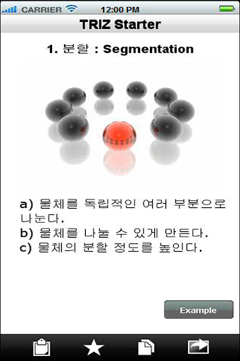 이 어플리케이션은 발명원리를 마스터 할 수 있게 시각화된 새로운 - 쉽고, 성공한 발명자들이 아직 사용하지 않은 효과적인 도구 -을 제공합니다.