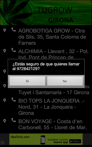 Podrás llamar a la Grow Shop desde la propia aplicación o incluso localizarla geograficamente! no pierdas tiempo buscando en internet... aquí las tienes todas!!!