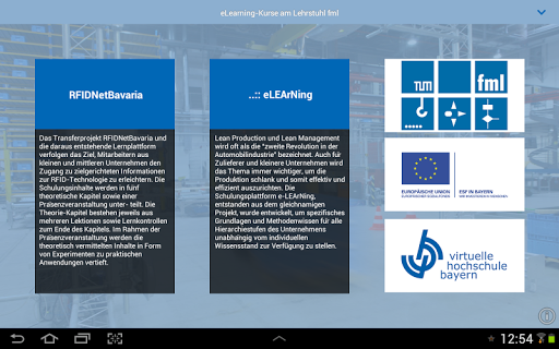 Am Lehrstuhl für Fördertechnik Materialfluss Logistik (fml) an der Technischen Universität München werden ausgewählte Ergebnisse aus Forschungs- und Industrieprojekten in Form von online-Schulungen aufbereitet. Aktuell stehen im Bereich Logistik zwei online-Schulungen mit technischem und strategischem Fokus zur Verfügung. Der Kurs „RFIDNetBavaria“ beinhaltet grundlegende Informationen zur Funktionsweise der RFID-Technologie. Ziel des Kurses „eLEArNing“ ist ein Sach- und Methodenwissenstransfer zum Thema Lean-Logistics, Lean-Management und Lean-Production.