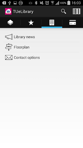 The TU/e Library app enables patrons to search for titles in the TU/e library, and view title metadata and full text documents if available. Titles can be stored in the app as favorites, which act as a shortcut to the actual record in the library database. User activities include reservations, renewals, current loans, loan history (when activated through the library desk) and open amounts payable to the library. Library news and contact information is also available.