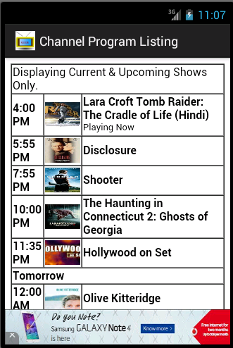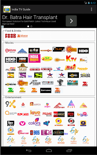 This app lists all the available Indian channels including regional channels and lists all the current and upcoming programs for each channel when clicked on a particular channel.