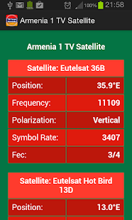 A alphabetical list with Sattelite Frequencies of TV from Armenia channels.