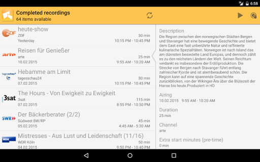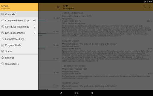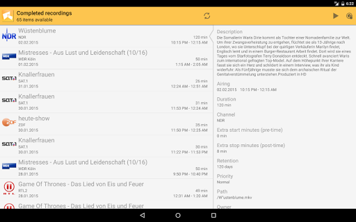 With TVHClient you'll never miss a program! Schedule, manage and watch your favorite TV programs and recordings anywhere from your smartphone or tablet. TVHClient interacts with your TVHeadend streaming server which is commonly used together with XBMC.
