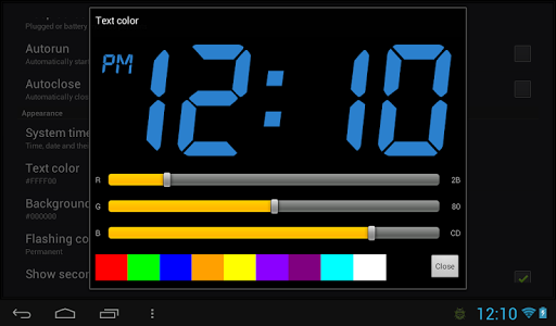 You can use this application for your lovely device like screen saver while charging. Especially for devices with dock stations. Just turn on autorun and autoclose feature in settings and clock will appear while device is docking.