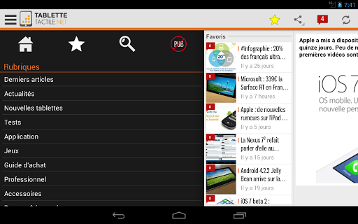 - Une page d’accueil pour bien naviguer au sein des rubriques (actualité, test, nouvelles tablettes, applications, jeux, guide d'achat, professionnel, accessoires, promos & bons plans, études, rumeurs et éducation),