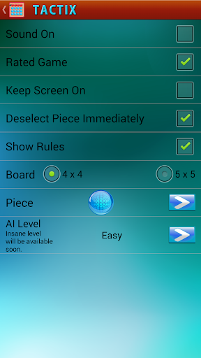 If you beat the "Hard" level, you are very good at Tactix, but more challenging levels will be available soon.