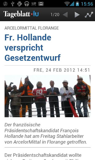 Lesen Sie die neuesten Nachrichten aus der Welt und aus Luxemburg auf der Android-Applikation des Tageblatt. Navigieren Sie durch unsere Rubriken Luxemburg, Faits divers, Großregion, Welt, Europa, Wirtschaft, Sport oder People.
