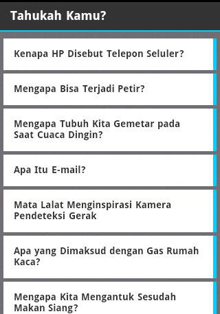 Ya,.... semua pertanyaan-pertanyaan tersebut terdapat jawabanya dalam aplikasi ini. Berisikan seputar ilmu pengetahuan yang menerangkan tentang kejadian sehari-hari. Dan merupakan jawaban yang baik apabila ditanyakan oleh anak.