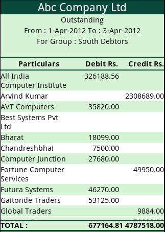 - Group-wise Outstanding Receivables