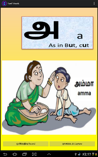 2. A Picture loaded by default against the Tamil Vowel. This picture can be replaced to any picture
