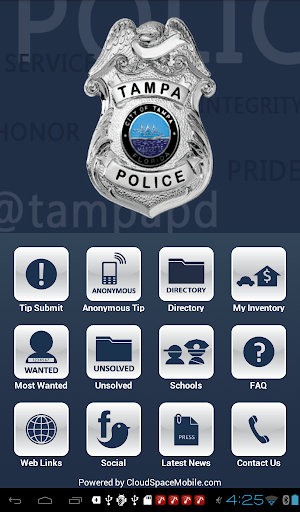 Welcome to the Tampa Police Department's Android mobile app. This is just one of the many ways for you t reach out to your police department. Find ways to help make your neighborhood safer by joining the crime fight keep a close eye on our wanted persons and unsolved crimes section. Helping us solve a crime is literally at you fingertips.