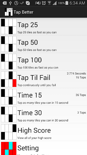 Several game modes to play with and tap the black tiles to win.