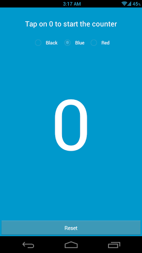 Like counting? Or stuck in a job of tally marks? Here is a simple tap counter to make you count anything in this world. Just tap to increase the counter with an all amazing Android 4.0 HOLO UI and three themes viz Black, Blue and Red. Or even if you like playing a tappathon with your friend, just start the app and check how many taps you make in a minute. Person with the higher score wins!
