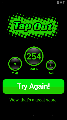Tap Out is a free, rushing, tapping, button mashing game for a single player! See how many taps you can tap out before time runs out. We'll give you a hint: the key to the challenge is getting more fingers on the button to multiply your button mashing fun! If you think it's easy, we'll let you in on a secret: Seth and Drew, the minds behind this madness, can do well over 250!