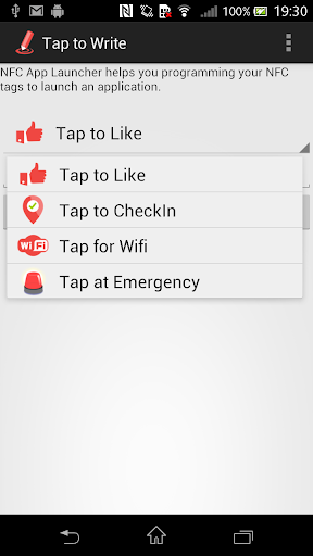 c. Select the app for which you need to create an NFC tag