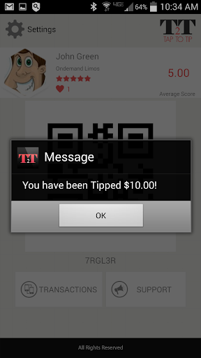4. Have your customer download the Tipper app (Tap2tip), register, and scan your unique service provider QR code. They simply tap to tip and your money will be on its way. You will receive an immediate notification that you have been tipped.