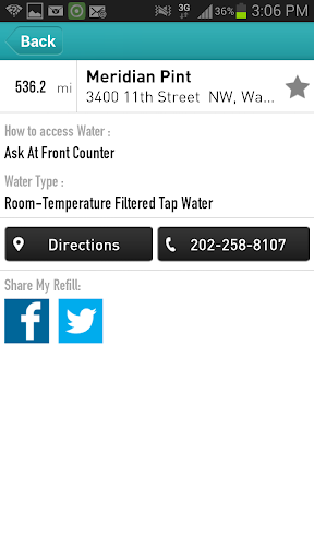 -Ability to share your refill at participating businesses with your Facebook friends or Twitter followers so you can let everyone know what clean, sustainable water means to you!