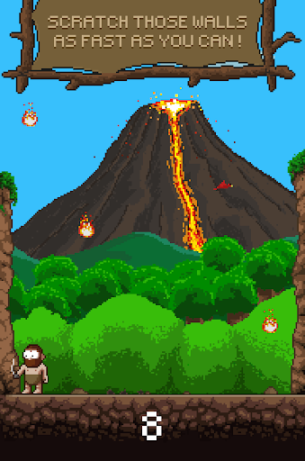 Single tap control! With each tap on the screen, the caveman changes direction while running. You have to scratch a wall on the left or right side to gain points. Oh, and avoid falling rocks.