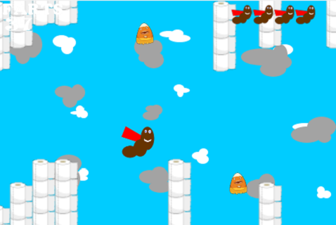 Tappy Turd - he is a happy flappy flying turd. That's right, he is happy and he is a turd! In this Flappy Adventure you will need skill and reflex's to guide Tappy Turd to his home! How many levels can you master?