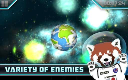 Our cute little astronaut buddies, Rocky and Rover are floating in space, but can't get home until the Earth is free of any danger. They will cheer you on and keep you company while you play.