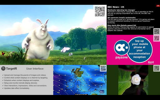 The Android player application can auto start and display up to 9 zones of content with full remote monitoring and control from TargetR admin interface.