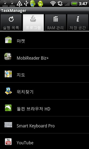 ※ Some of Task killer application does not properly shut down the application, there are applications.