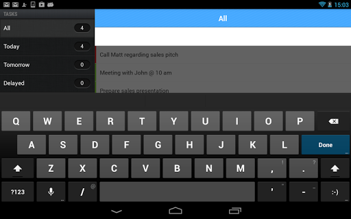 You also have options to view all tasks, pending tasks as well as completed tasks. You can mark a completed task as incomplete by swiping it to the right.