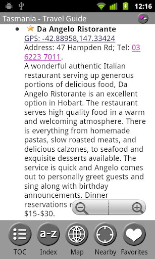 MobileReference Travel Guides provide detailed, practical information about attractions, landmarks, transportation, cultural venues, dining, lodging, history and much more. They are indexed alphabetically and by category, making it easier to access individual articles. Attractions can be viewed on an offline GPS map along with your current location so that you can easily find attractions near you as you explore the city.