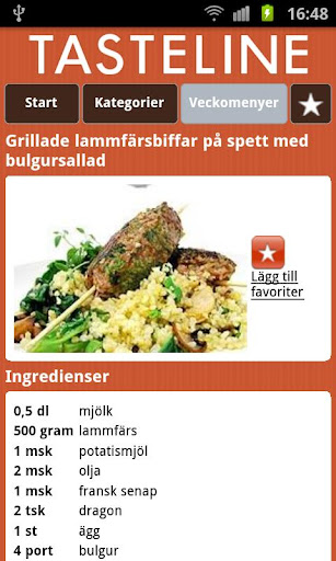 Du kan välja ut recept för att skapa din egen favoritlista.