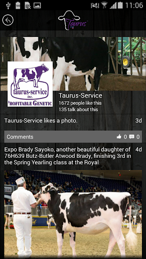 The Taurus-ST app allows you to Search and Select the best sire for your breeding purposes. The app includes a Facebook Feed, Events Calendar, and Straw Scanner. We have also added extensive contact information to the app so you can Call, E-mail, and receive sale updates on the go.