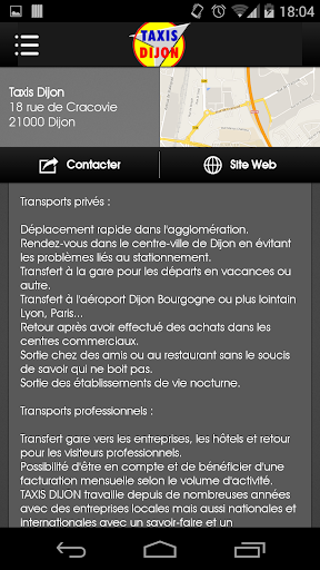 Ne perdez plus de temps à chercher un taxi ! L’application "Taxis Dijon" vous permet de commander un taxi 24h/24 et 7j/7 en seulement quelques secondes sur votre smartphone.