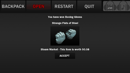 This is unofficial realistic crate simulator for Team Fortless 2. This game has backpack with unlimited slots, all items are sellable. If you open any crate you will be charged the amount of crate itself + key (if it is locked). You are able to see your money in backpack tab. Each item has their Steam price and all items (Strange, Unusual, Collector) are included!
