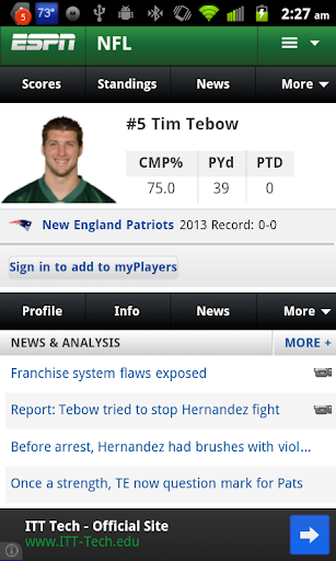 Want Tim Tebow on your home screen? Have all the most recent stats and info of your favorite player at your fingertips. This is a widget you can place wherever you like on your home screen that will take you directly to Tim Tebow stats and information at ESPN. You can re-size the widget to fit any area you like.