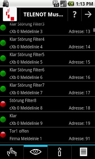 Anzeige aller Meldelinienzustände