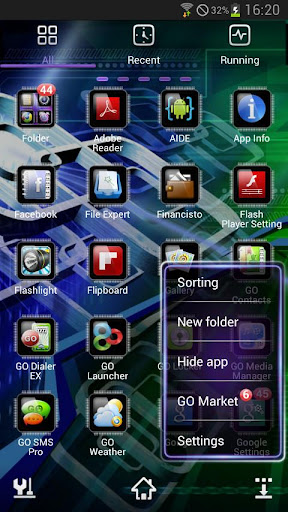 Tech GO Launcher Ex theme. Over 190 custom icons. This theme will give your GO Launcher App a new look just like the NEXT LAUNCHER style. GO Launcher Ex and APEX Launcher compatible.