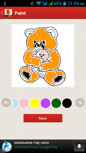 This Teddy Painting app will allow your little kids to color various cute teddy pictures and have fun. Your child will be able to play with many colors and create excellent and colorful teddy images and cartoon pictures that you can share on various platforms and show the creativity that you little one has made. This teddy painting app can also help you teach your child about various colors and what each color denotes. To add to the fun there is also a refreshing music added to the app that will make it a better experience to paint and color teddys. You can chose from a list of images that your child wants to paint. Thereafter be proud on what your child has come up with.