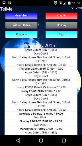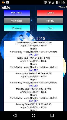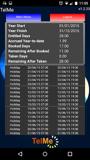 TelMe is a companion app for PeopleHours allowing staff to view their past and future work schedules, holiday entitlement, rates of pay per duty* as well as the ability to receive and respond to management messages sent.