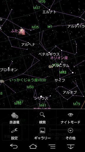 ・表示する恒星の数をオリジナルから増やし、約1,600, 15,000, 40,000, 80,000, 120,000から選択できます(オリジナルは約1,000)。ただし恒星の数を増やすと端末によってはメモリ不足で正しく起動しないことがあります。