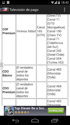 Con esta App podrás ver la lista de todos los canales de televisión que emiten en Chile.