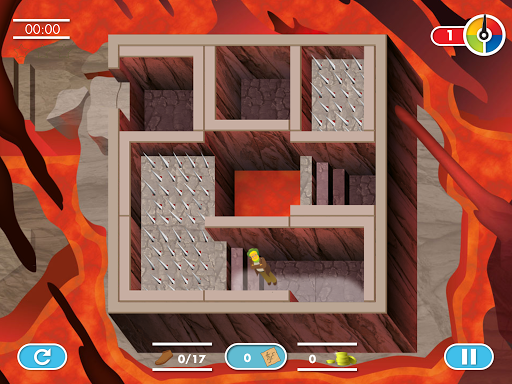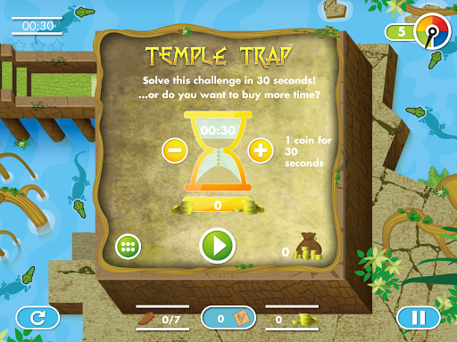 The object of the game is to safely guide your adventurer through the temple. Each challenge is completed when the adventurer exits the temple via the highlighted path.