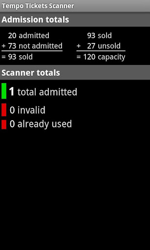 Validate barcoded tickets generated by the Tempo Tickets event ticketing application. View current admission and sales statistics.