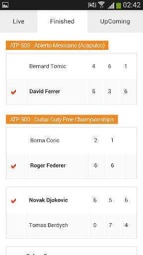 This application for live tennis matches, as well as it is show the finished matches and upcoming matches, it show you the score point by point and for all champions(atp,wta .. etc) that happen in specific week, the application show as well the finished matches and upcoming matches.
