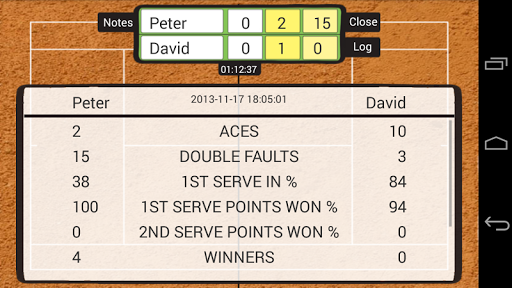 Keywords: tennis score keeper, tennis statistics, tennis match evaluation