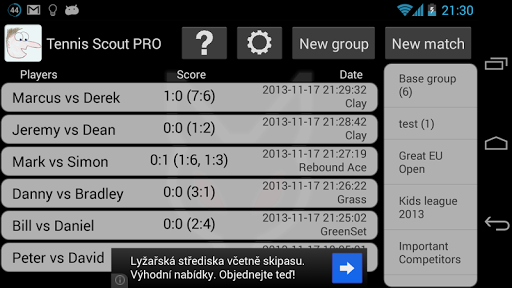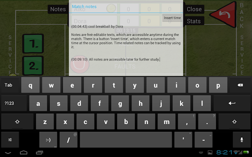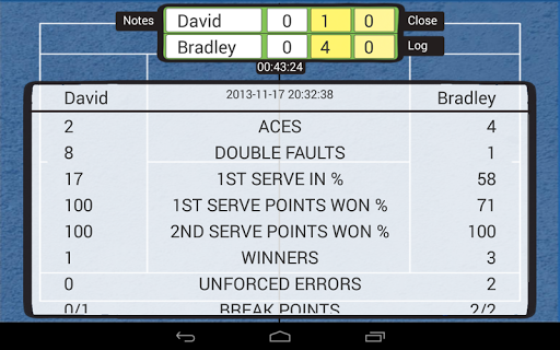 It keeps all the interesting tennis match scores stored on you device. An every point played in the match is tracked, identified, stored and further evaluated in statistics.