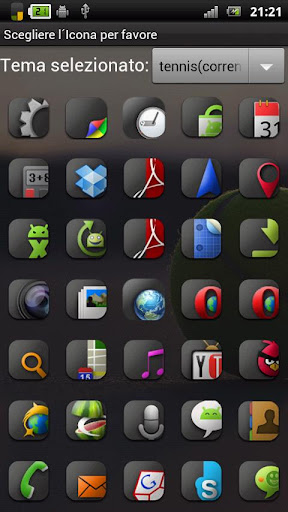If you are still having issues with icons not changing then long press the app you wish to change the icon of, tap replace and choose Theme's Icon. Select Tennis in the top right and then choose the correct icon.
