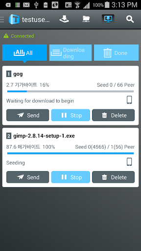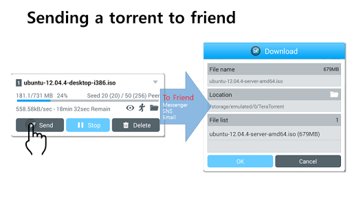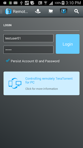 With this function you can remotely take the control of your desktop TeraTorrent client.