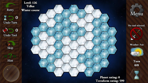 Terraform is a relaxing turn based puzzle game set in the future. Alter over 160 planets (80 free) to allow settlements and forests to survive. Planets are made of hexagonal tiles that can be altered using many different tools and weathers. Use rain weather to fill a dried out lake with water, hot weather to prevent forests from expanding too far or burn them down, spread deserts and more.
