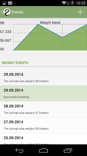 - Record the weight of your animal: If you regularly weigh your pet to determine its state of health you can now record this data and can view it visually edited.