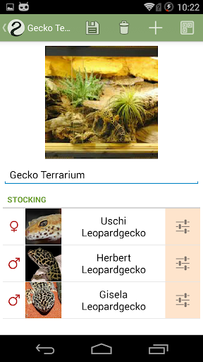 With Terrarium Manager you are now able to manage your terrarium and animals in a fast, easy and intuitve way. Never miss a feeding of your animals again!